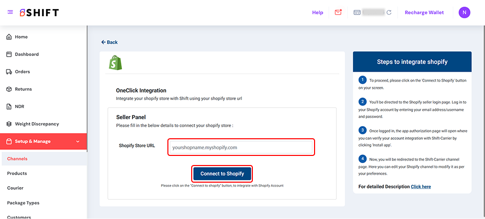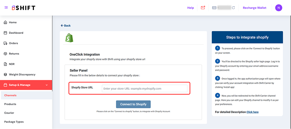 • Click on “Connect to Shopify”.