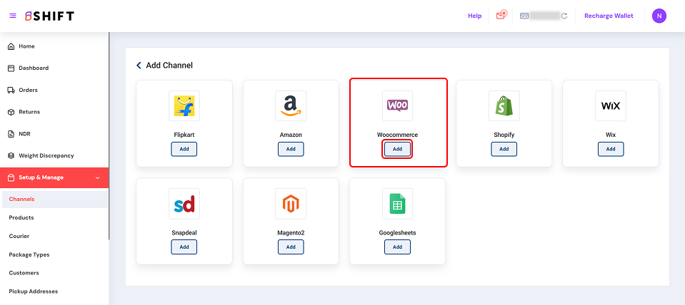 • From the Home page, navigate to Setup & Manage > Channels from the left Menu.