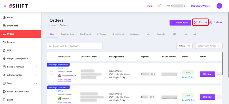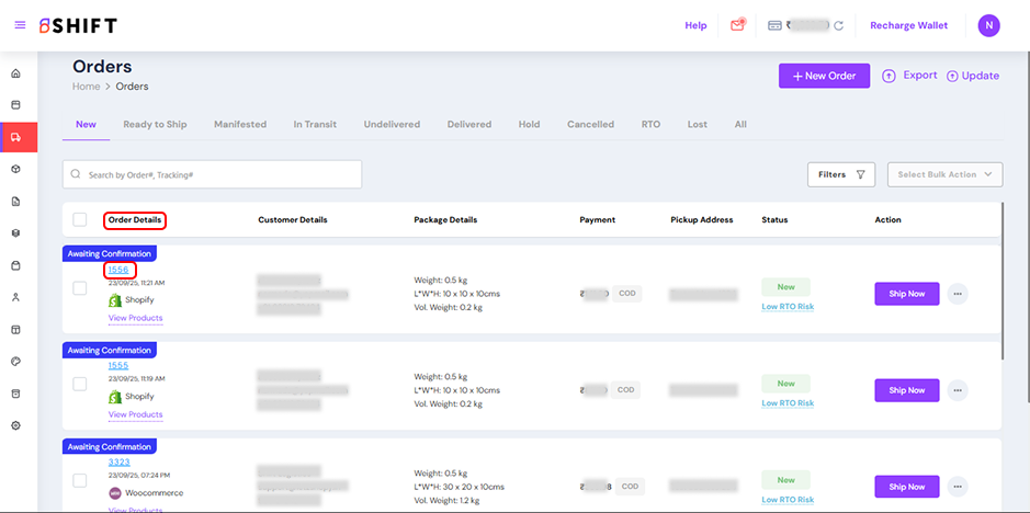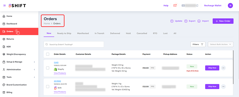 - RTO (Return to Origin): Shows orders that are being returned to the sender.