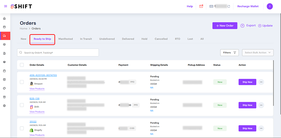 - Ready to Ship: Shows orders that have been prepared and are ready for courier pickup.