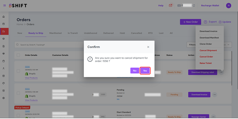 Note : Orders can only be canceled before they are picked up. Once the pickup is completed, cancellation is no longer possible, you need to raise ticket if needed.