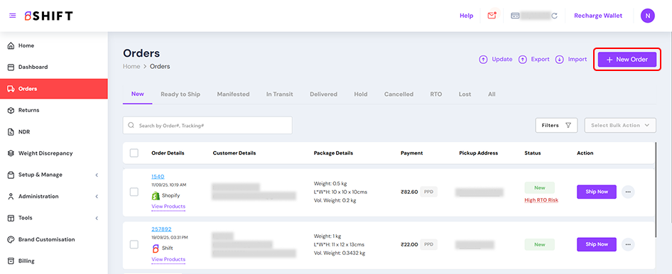- To book your order, click on create order. You’ll be taken to the Courier Selection page, where you can select your preferred courier partner to ship your order.