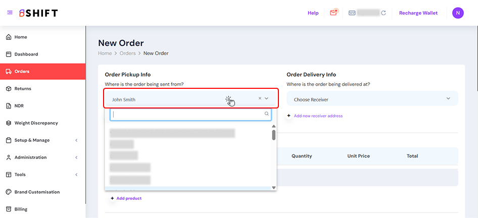 - The Pickup Address is the location from where your shipment will be collected (e.g., your office, warehouse, or shop).